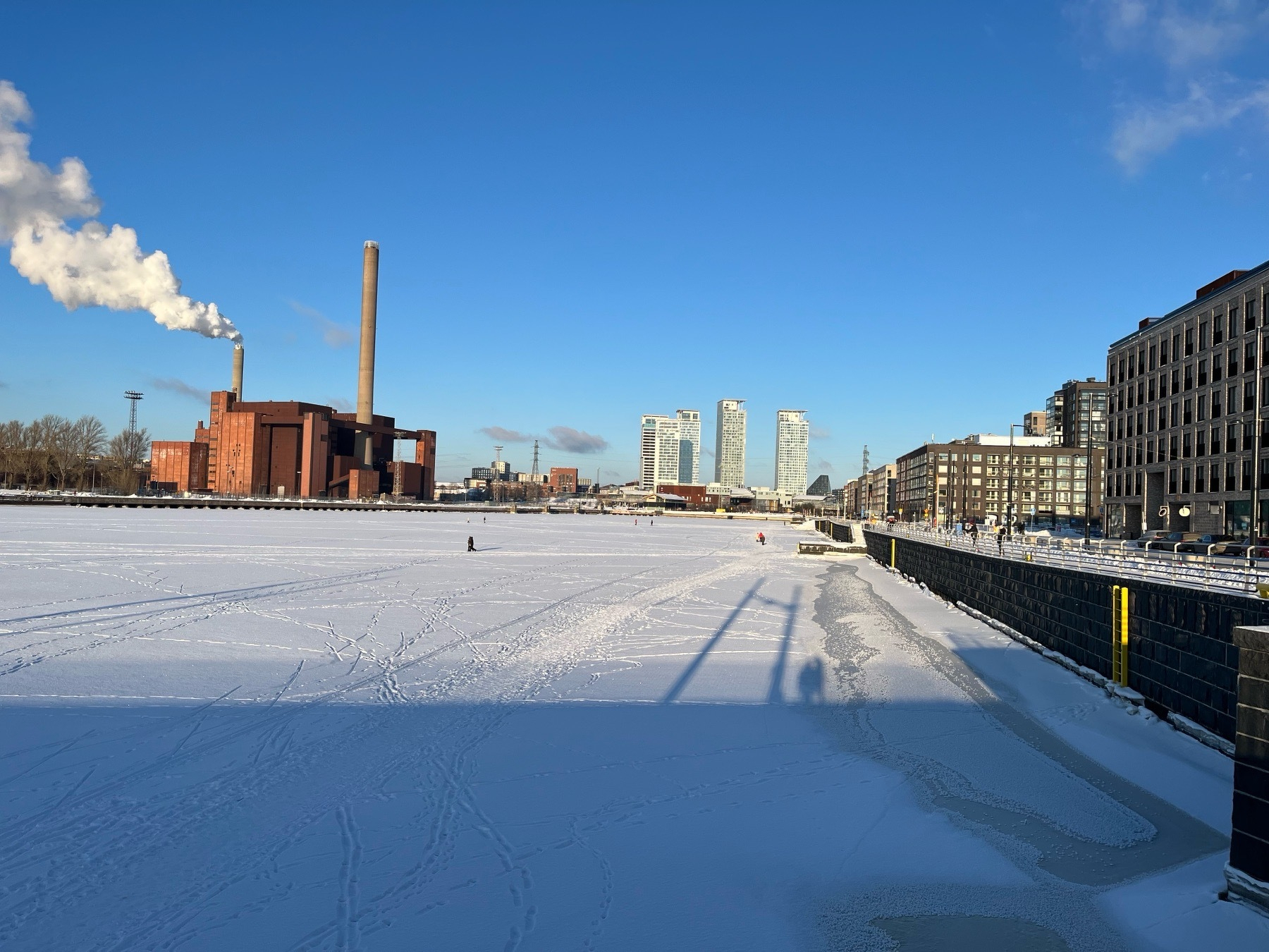 Very serene watching people walking on the ice from the new bridge